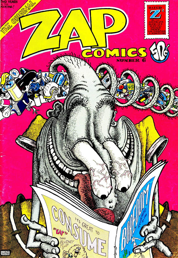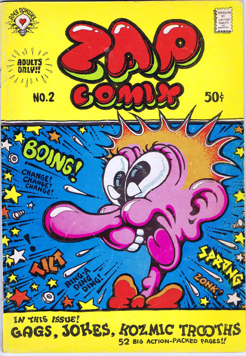From the psychedelic, mind-tripping works of surfer Rick Griffin to the sexually charged and violent satirical vignettes of S. Clay Wilson, Zap was a creative space where young, passionate artists could express their innermost (and often perverse) thoughts while exercising their counterculture political and social views completely unrestrained. Using entrepreneurial and social networks that they themselves established, these creators controlled the printers and distribution channels for their comix and, as such, there were no rules, regulations, or code that they needed to conform to.