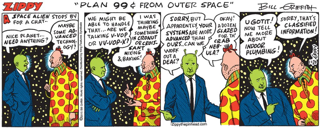 Mr. Griffith still creates his daily Zippy Strip for King Features, which can be seen on his website here: https://www.zippythepinhead.com/