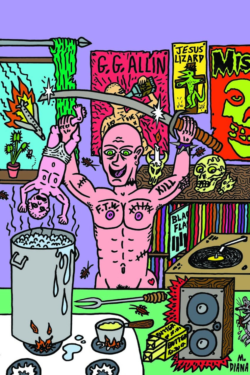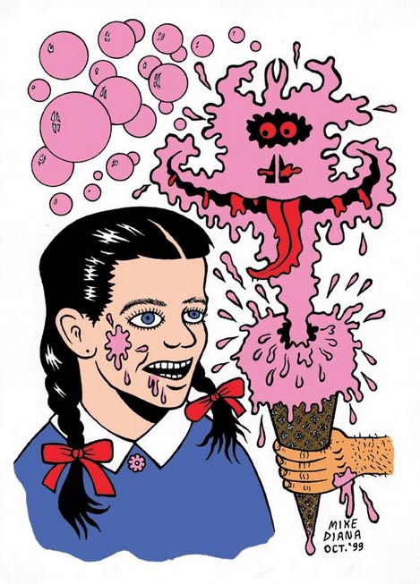 Mike Diana is a zine and comic book artist, painter and all around fun guy who was busted in 1992 in Florida for doing a zine. The zine was called Boiled Angel and Mike zeroxed about 200 of these for his friends.