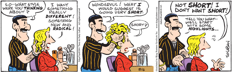 In 2001, King Features Syndicate syndicated "Edge City" a daily comic strip written and drawn by Terry and Patty LaBan.