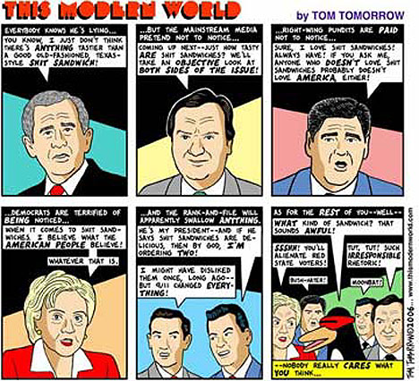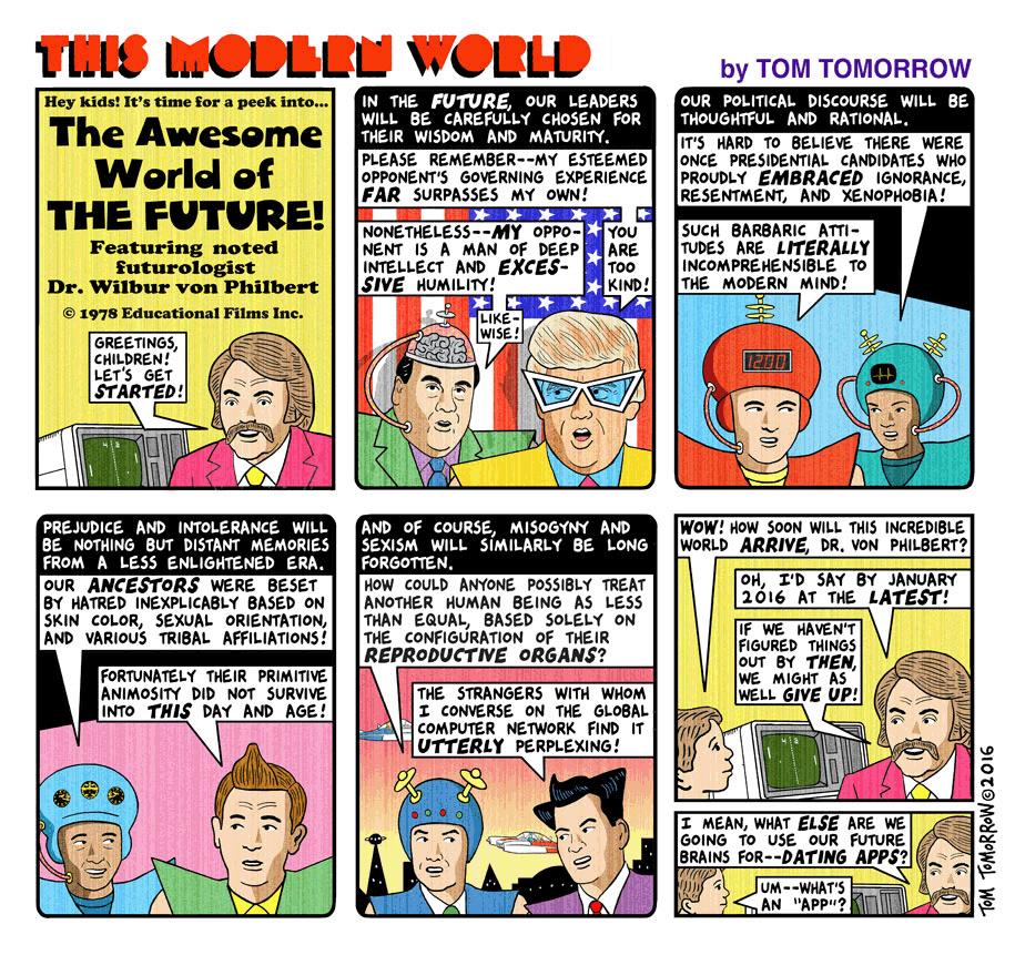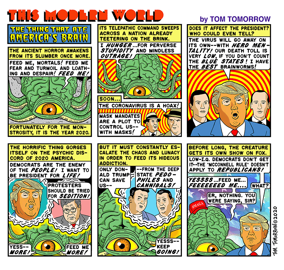 Tom Tomorrow has given many campus talks and presentations, and will available for speaking engagements when such things are possible again.