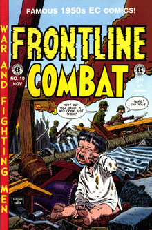 Frontline Combat #10 was released in 1951 when the US was at war with Korea.The child on the cover is an enemy child.The story follows a young Korean family and the first few years of their little boy's life. It ends with the child holding onto his dead mother in the rubble of their destroyed home, crying out for his father, lying dead a few yards away.