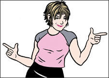 We're talking burlesque pasties here. As Forney explains through a combination of words and drawings: "Bend your knees a little. Pop your legs straight and pop your right then left shoulder forward. Repeat, bouncing into a steady rhythm: Bend-pa-pop-bend-pa-pop-bend-pa-pop."