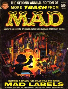 Kelly Freas, a cover artist and illustrator of many of Mad's most memorable advertising parodies, is even better known as a science-fiction illustrator. In the New Encyclopedia of Science Fiction he is called "the most popular illustrator in the history of science fiction. " His specialty is a realism unique to the genre: his characters have wrinkles, expressiveness, and bit of humor. These qualities served him well when he began contributing art to Mad's advertising parodies in 1955: he always seemed to hit just the right balance among realism, warmth, and mockery. By 1957, Freas had mastered the art of rendering Alfred E. Newman on Mad's cover.