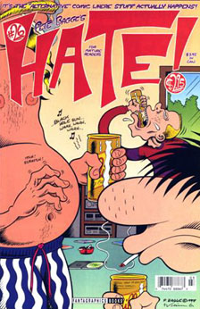 Debuting in 1990, Hate Comics chronicled the misadventures of Bagge's semi-autobiographical character Buddy Bradley. Set in Seattle itself, Hate wound up becoming permanently associated with the Seattle youth and music scene that generated so much world-wide publicity in the mid-90's. The many record sleeves and posters Bagge illustrated for local labels solidified this association even further.
