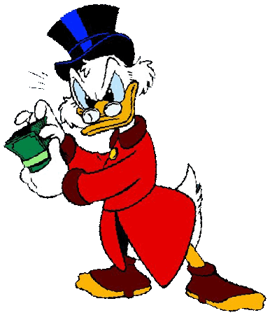 Scrooge McDuck is a cartoon character created in 1947 by Carl Barks for The Walt Disney Company. Appearing in Disney's "Uncle Scrooge" comics, Scrooge is an elderly Scottish anthropomorphic Pekin duck with a yellow-orange bill, legs, and feet. He typically wears a red or blue frock coat, top hat, pince-nez glasses, and spats. He is portrayed in animation as speaking with a Scottish accent. Originally intended to be used only once, Scrooge became one of the most popular characters in Disney comics, and Barks' signature work. Named after Ebenezer Scrooge from the 1843 novella A Christmas Carol, Scrooge is an incredibly wealthy business magnate and self-proclaimed "adventure-capitalist" whose dominant character traits are his wealth, frugality, and tendency to seek more wealth through adventure.
