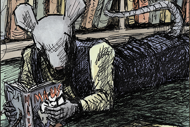 To achieve this concise distillation of meaning, Spiegelman reworked each panel innumerable times, tracing and retracing the contours of each drawing with multicolored inks until he arrived at the perfect synthesis of form and content.