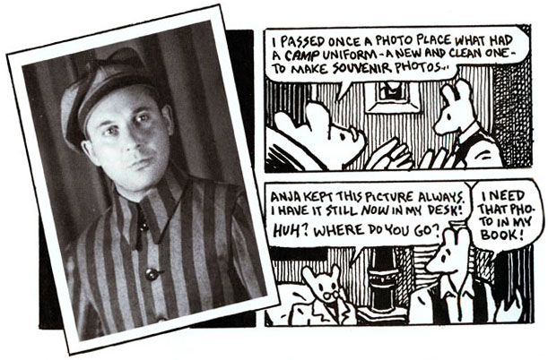 Although the style of the finished book is deceptively simple, a protracted process was required to complete each page. Starting with his father's taped memories, Spiegelman distilled salient scenes and scraps of dialogue, which in turn were refined to fit a comic-strip's relatively restricted framework. The artist deliberately adopted an austere, pared-down style in order to make his mouse-and-cat metaphor as transparent as possible and to create a seamless flow between word and image.