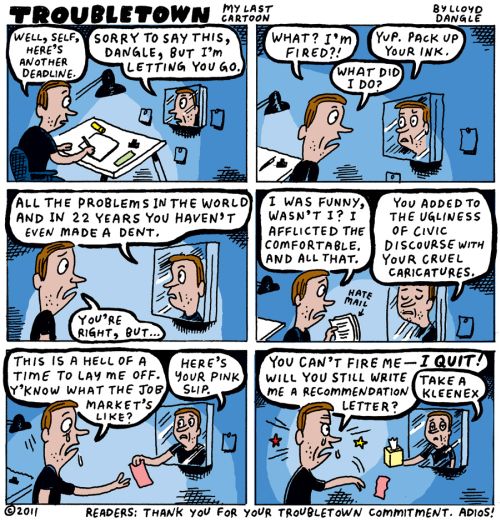 Dangle said he planned to retire his Troubletown strip at the end of April 2011.