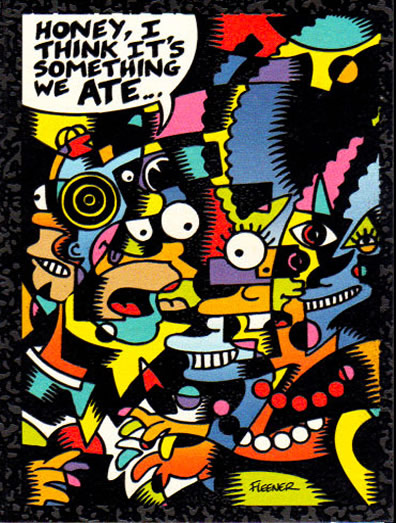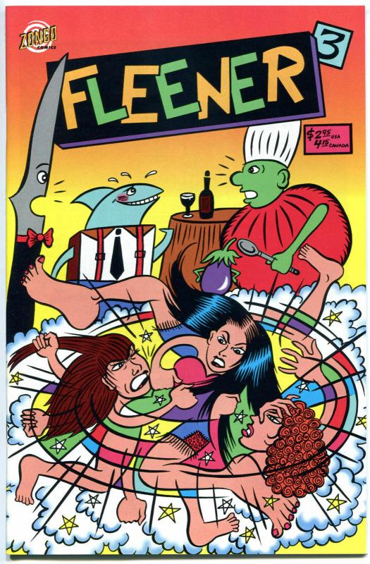 Born in Los Angeles in 1951, Ms. Fleener majored in print making at Long Beach State University. Her first publication was in Robert Armstrong's "The Tubers Voice: The Couch Potato Newsletter". Her work has appeared in many publications including Wimmen's Comix, Weirdo, Drawn and Quarterly, Heck!, Tits and Clits, and Twisted Sisters. Her solo publications include "Hoodoo" and "Slutburger Stories". She has exhibited at LACE, La Luz de Jesus and the Laguna Beach Art Museum. She lives in a small beach town in Southern California.