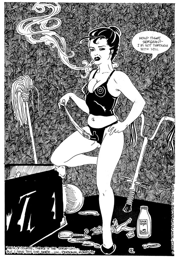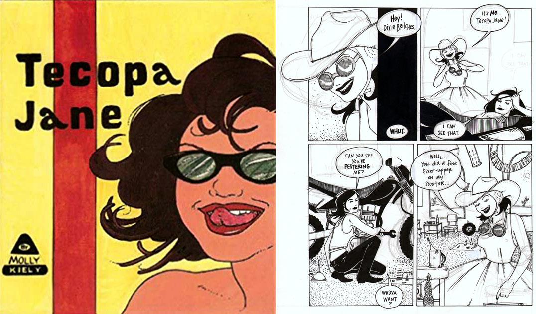 Molly Kiely is an artist and cartoonist. Since 1991, she has written and illustrated a dozen or so comics including the "Diary of a Dominatrix" and "Saucy Little Tart" series and the graphic novels "Tecopa Jane" and "That Kind of Girl". Ms. Kiely humourously explores themes of freedom of sexual expression and voluntary isolation from mainstream society. Fittingly, she spends most of her free time exploring the Mojave and Sonoran deserts by herself or holed up in her 1950 Roadmaster trailer northwest of Tucson, Arizona. She loves getting dressed up and has an overwhelming collection of vintage cookbooks.