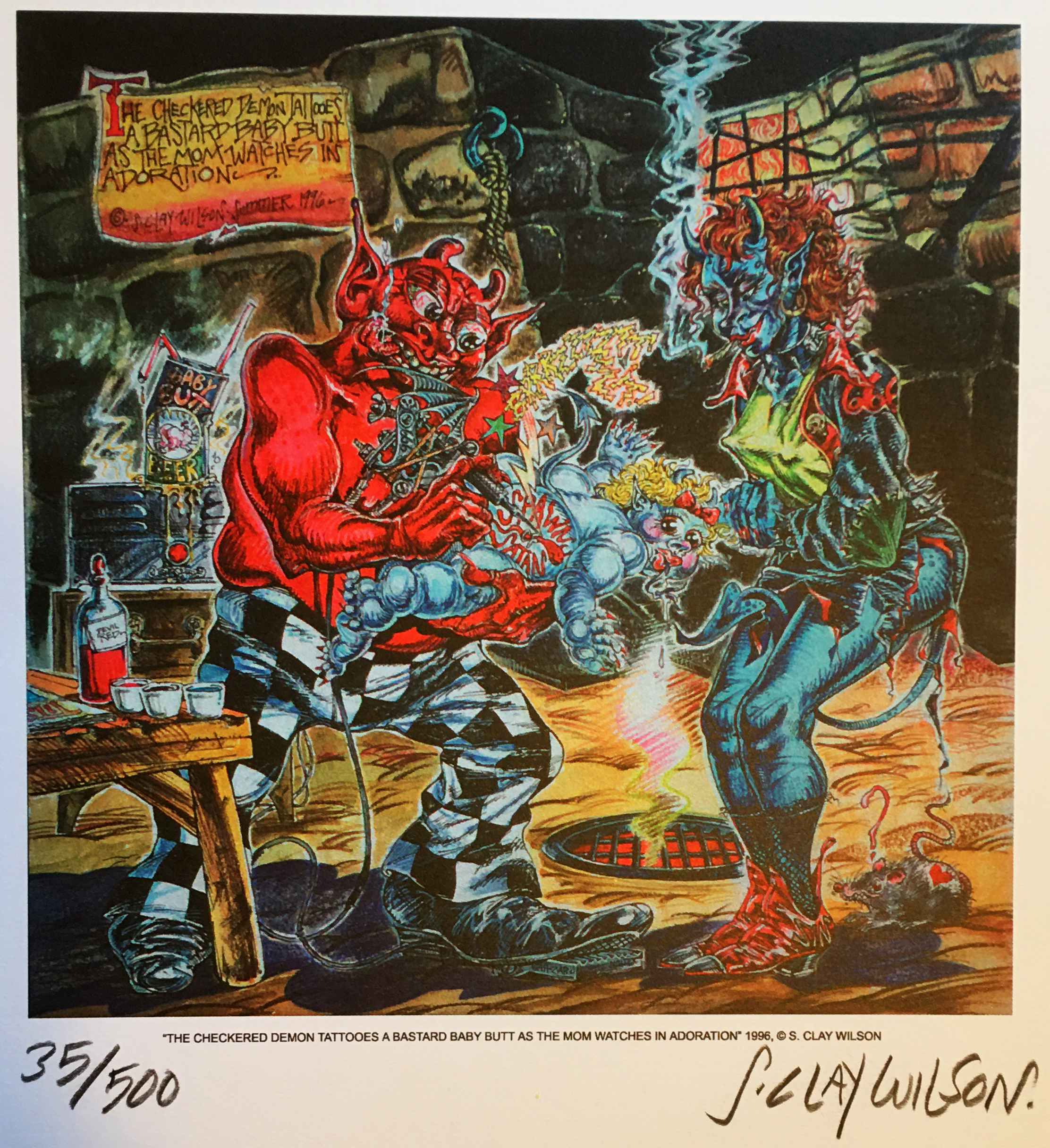 S. Clay Wilson print (7" X 7"), signed and numbered by the artist himself